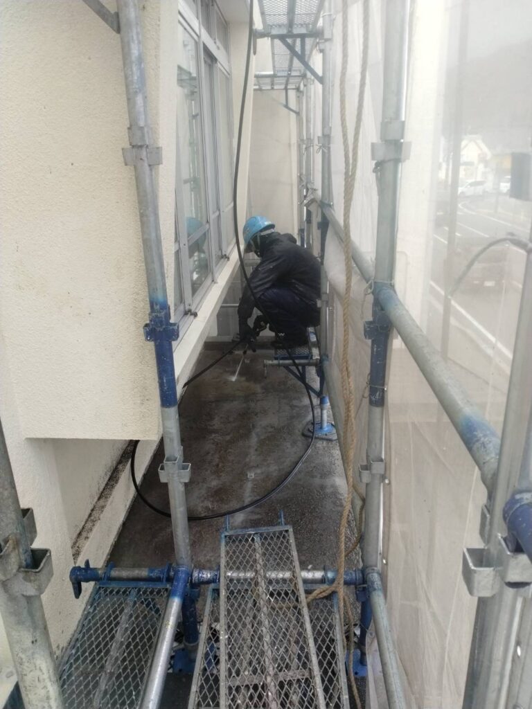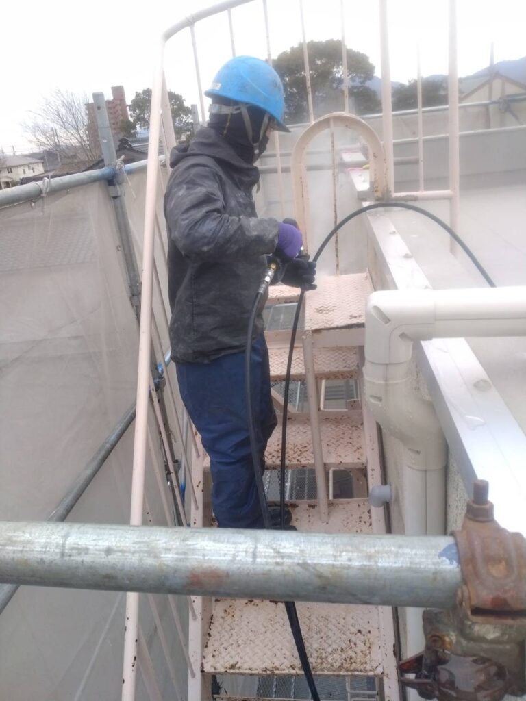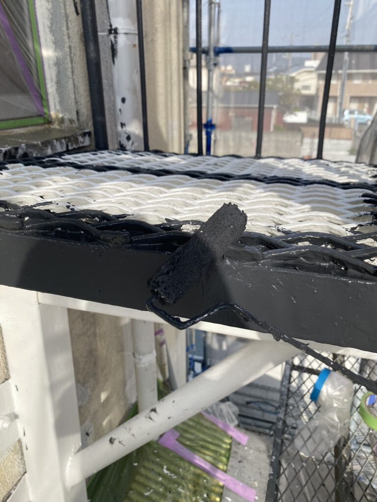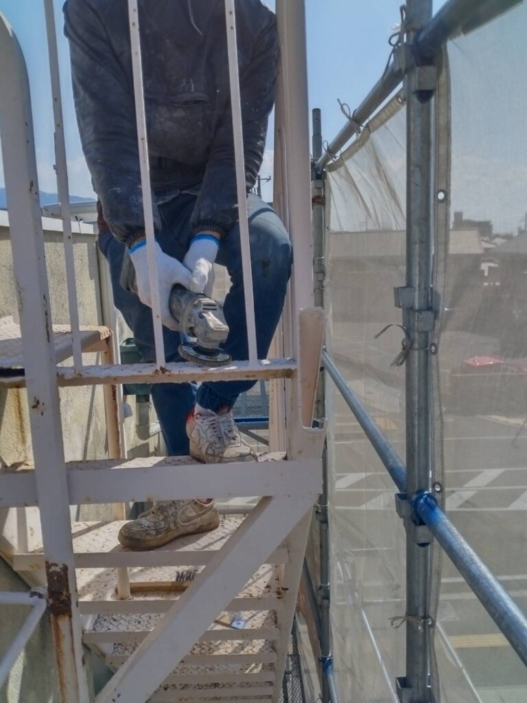 鉄骨階段部分は機械を使って、塗料の密着性を高めるためケレンしていきます!大事なひと手間ですね✨