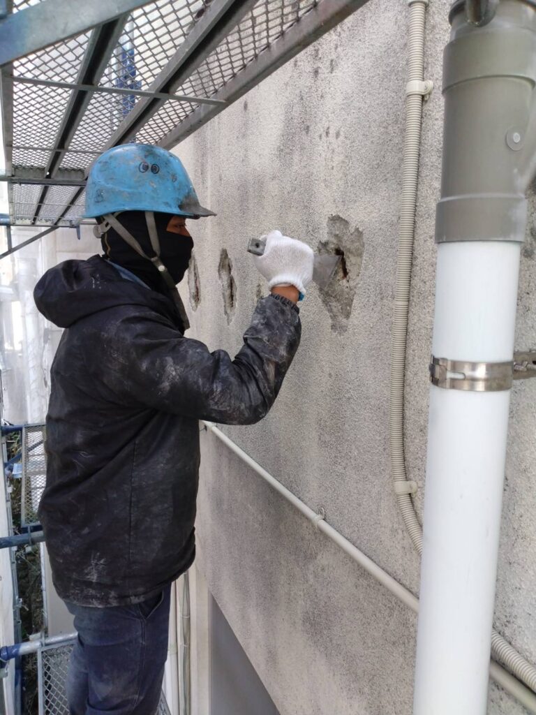 ひび割れヶ所・爆裂箇所を補修していきます!