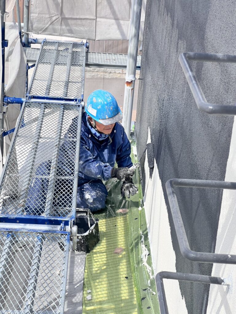 まずはカッターや電動カッターで劣化した既存のシーリングを撤去します!綺麗に撤去したら、シーリング材と外壁の未着性を高めるプライマーを塗り、新しいシーリング材を打っていきます。その後へらを使って隙間が無いようにならし、養生テープを剥がして完成です✨