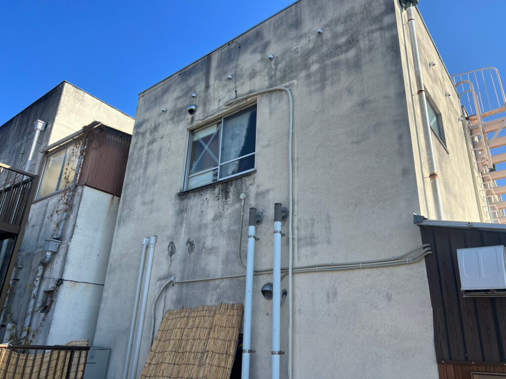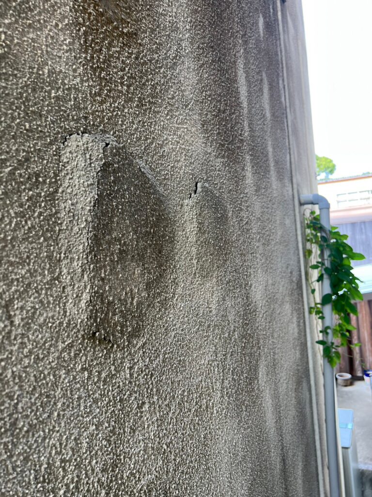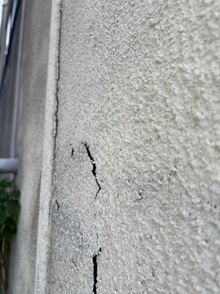 外壁にはかなり太いひび割れ(クラック)が😨もはや外壁材が落っこちそうな……。