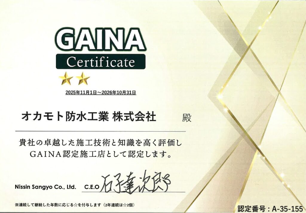 ガイナ認定施工店とは、メーカー(株式会社日進産業)から「この会社ならガイナの性能を100%引きだせる!」と、太鼓判を押されたプロ集団のことです!