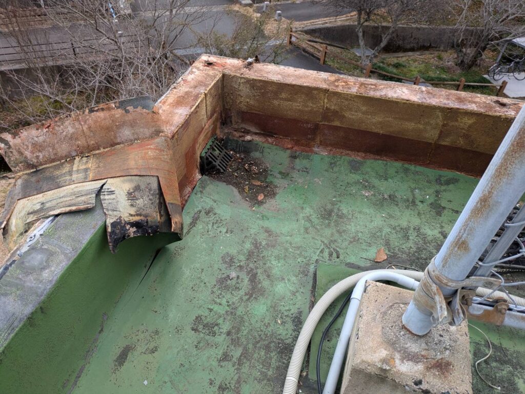 防水シートの弛み、防水シートの劣化、排水廻りの汚れの詰まり😵