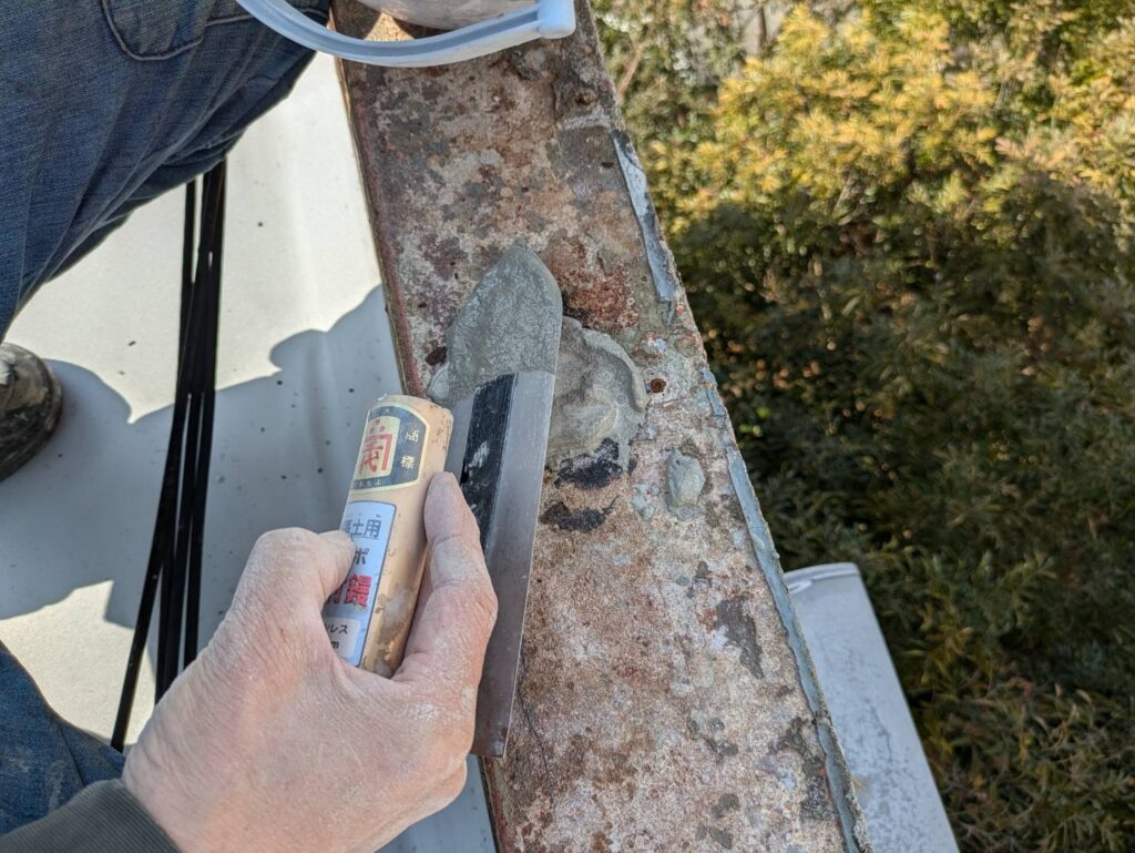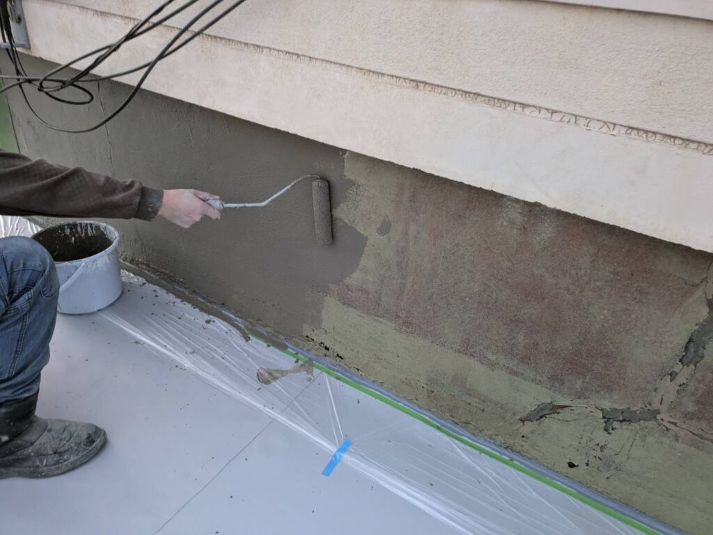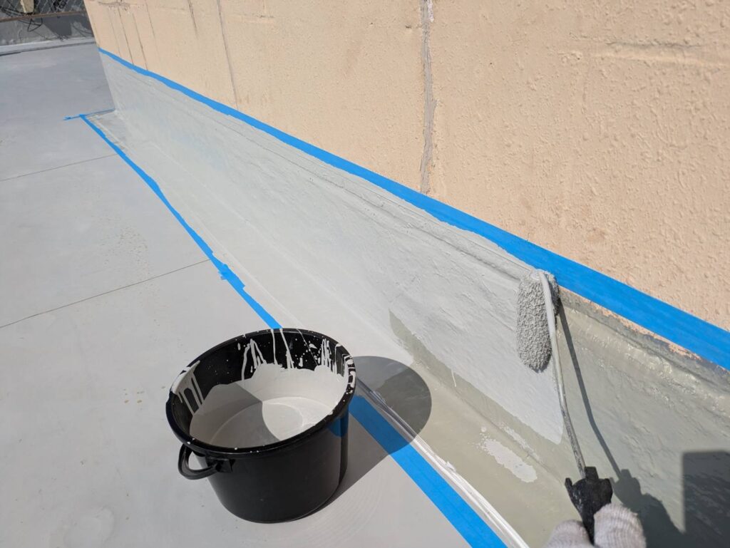立上りの下地を調整し、ウレタン防水塗膜を塗布していきます💧