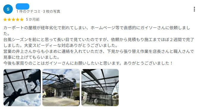 お客様よりGoogleクチコミいただきました!