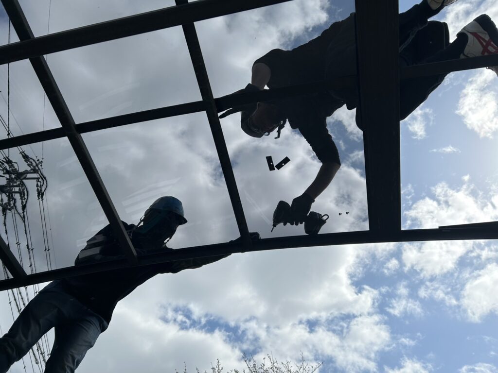 現地調査では、材料搬入場所の確認、ポリカーボネートの長さ・厚さの確認、必要枚数の確認を行います📝