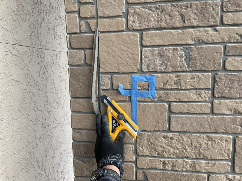 まずはカッターや電動カッターで劣化した既存のシーリングを撤去します!綺麗に撤去したら、シーリング材と外壁の未着性を高めるプライマーを塗り、新しいシーリング材を打っていきます。その後へらを使って隙間が無いようにならし、養生テープを剥がして完成です✨